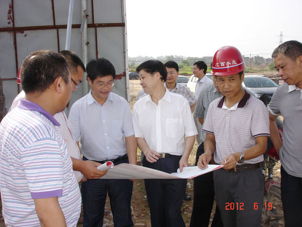 廖瑞釗副廳長深入查看了工程施工現(xiàn)場,聽取了業(yè)主、監(jiān)理和我公司施工管理人員對(duì)工程建設(shè)情況的匯報(bào):項(xiàng)目部本著“征地拆遷好一段,施工一段”的精神,加快施工進(jìn)度,確保施工質(zhì)量,工程進(jìn)展比較順利,目前主體工程已完成80%左右,計(jì)劃于2012年9月底項(xiàng)目全面完工。廖瑞釗副廳長對(duì)工程進(jìn)展表示非常滿意,他要求參建各方再接再厲完成好下一步工作,要進(jìn)一步提高認(rèn)識(shí),全面落實(shí)安全度汛措施,確保工程質(zhì)量與安全度汛。