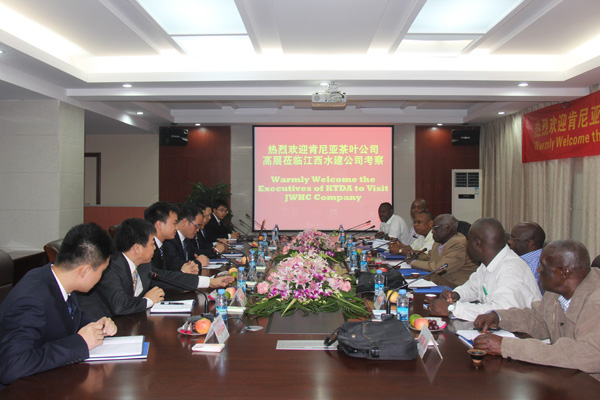 2014年9月上旬,肯尼亞茶葉發(fā)展有限公司董事Philip Kibirech NG’Etich先生一行七人應邀來我公司參觀考察,旨在加深雙方了解和建立互惠共贏的合作??偨?jīng)理徐洪良代表公司對他們的到來表示熱烈歡迎,總會計師王義生、總工程師胡鴻煌及海外公司相關負責人參加了會見并陪同肯尼亞客人參觀了公司總部各部門。